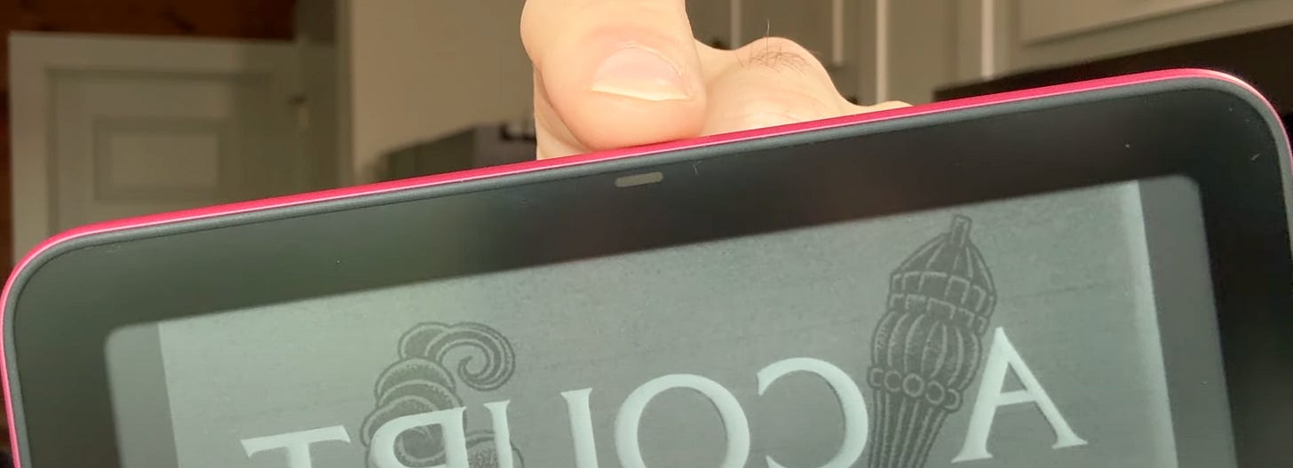 虽然叫作 Colorsoft Signature Edition,其实就是 KPW 6 彩色版。屏幕素质和国产目前的彩色屏幕一样:300 ppi 黑白色、150 ppi 彩色。这种屏幕可能令我们在阅读时会注意到彩色和黑白之间的明显差异,削弱阅读体验。从销售层面看,这次也并不像其他成熟系列提供多彩后壳的可选配置,只有传统的「亚马逊黑」