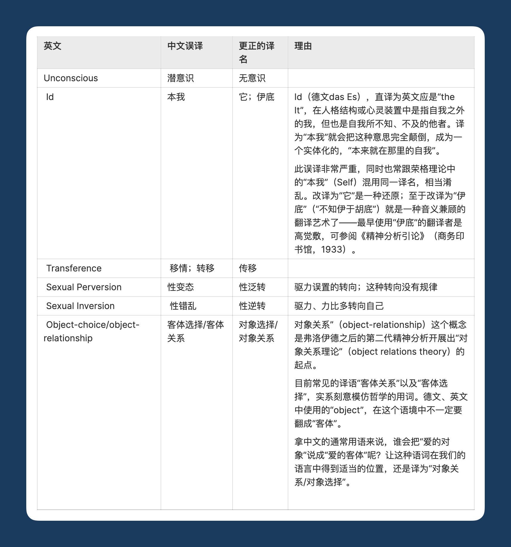 也就是说,他将精神分析从治疗困境中抽离出来——现在也并不推荐精神分析作为首要选择、推荐的治疗方法——变为了智力游戏;这就是为什么我在本科时选择在文学文化学院而非心理学院学习精神分析,也是同济大学的精神分析项目被归类为哲学方向的原因之一。