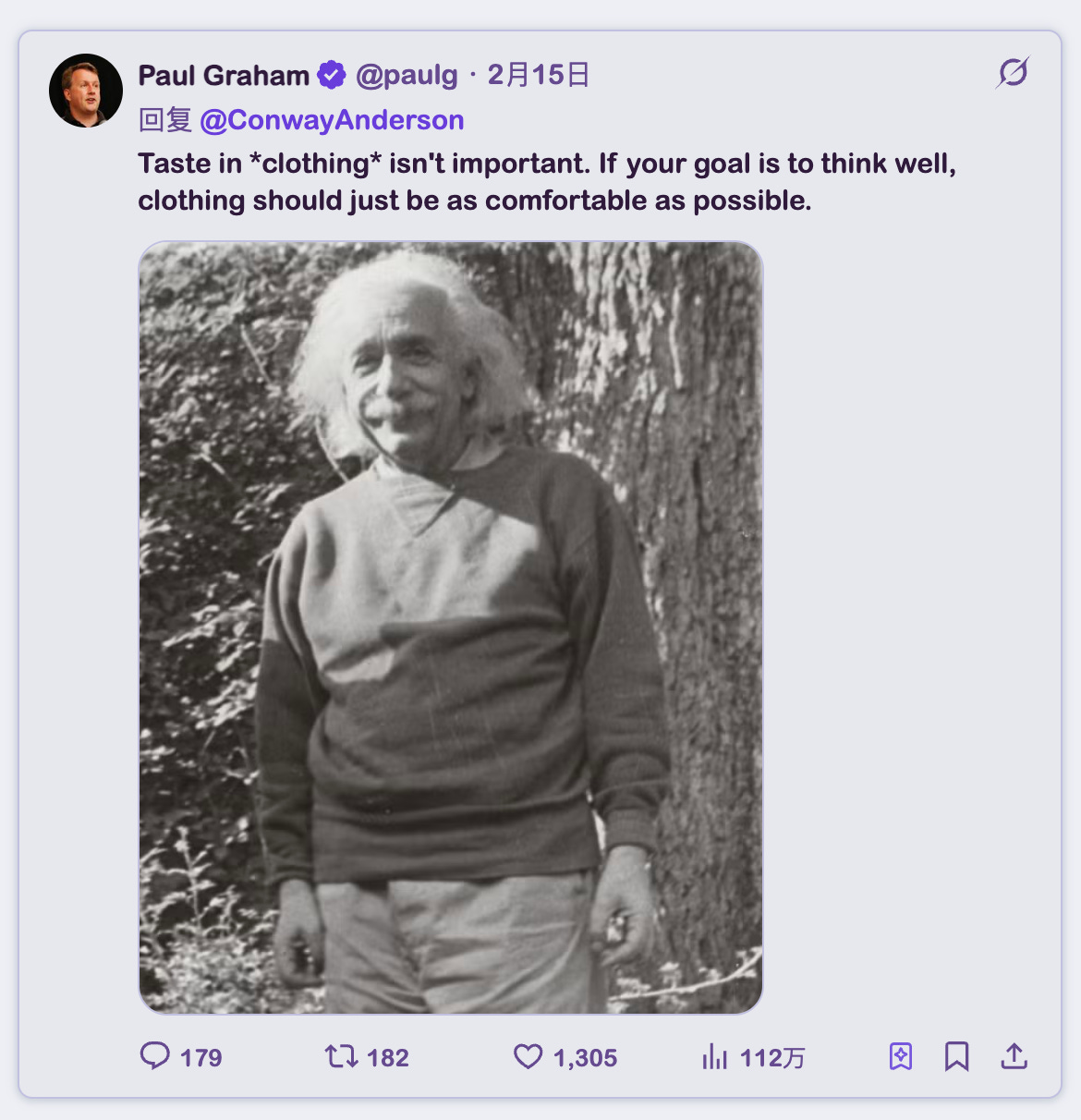 对衣着的品味并不重要。如果你的目标是好好思考,衣服只需要尽可能舒适就行。