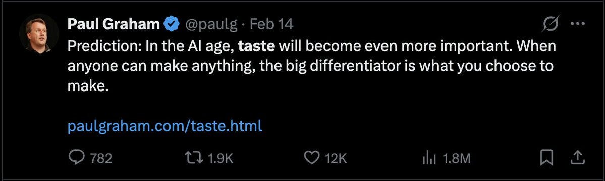 当然,「品味」是唯一重要的事。选择的能力,策展的能力。人类一直在做的事。「品味」是一个简单的答案。