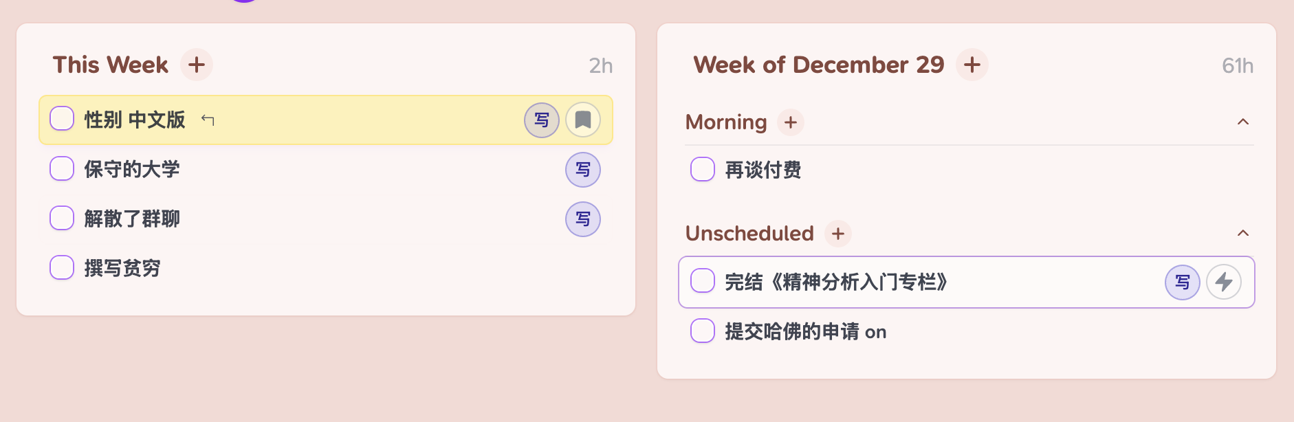 中间是天/周的融合视图,让我们更加专注于每天和每周的任务。