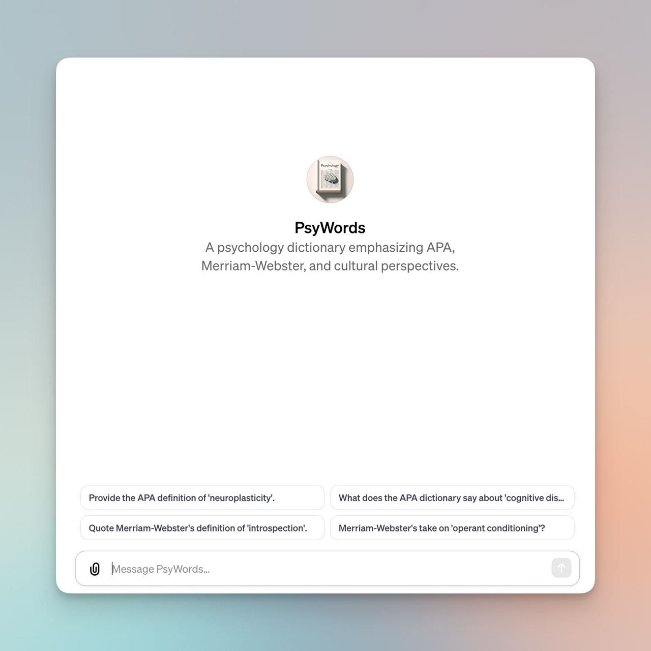 I've developed two GPTs: PsyWords and Psychology Insight Assistance.
