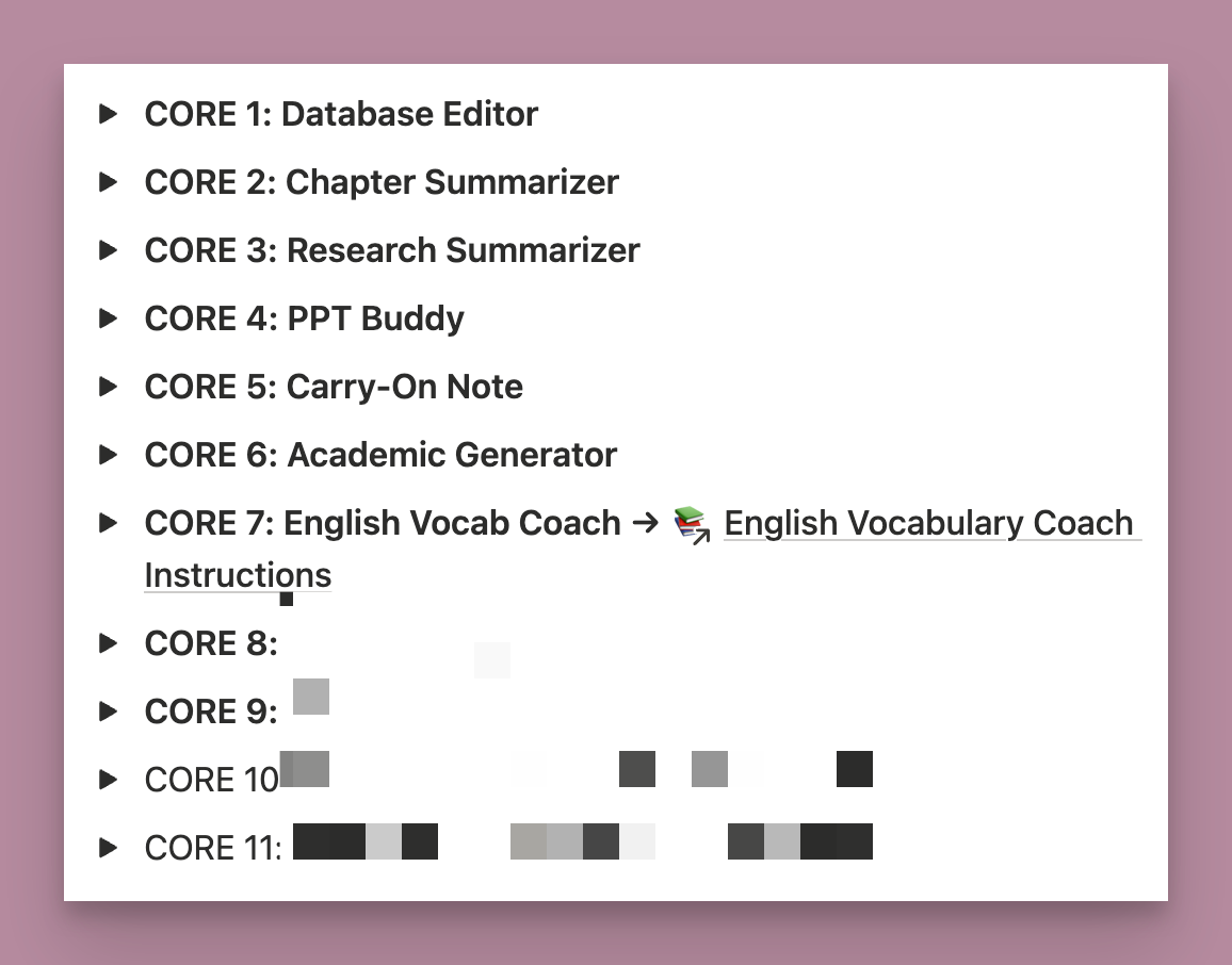 我上周分享了语言单词学习模板。将「Coach」页面设置为「Instruction」后,遇到不会的单词,只需输入一个单词,剩下的一切交给 AI 执行。你的任务只剩下三件事:等待、仔细阅读、应用练习。