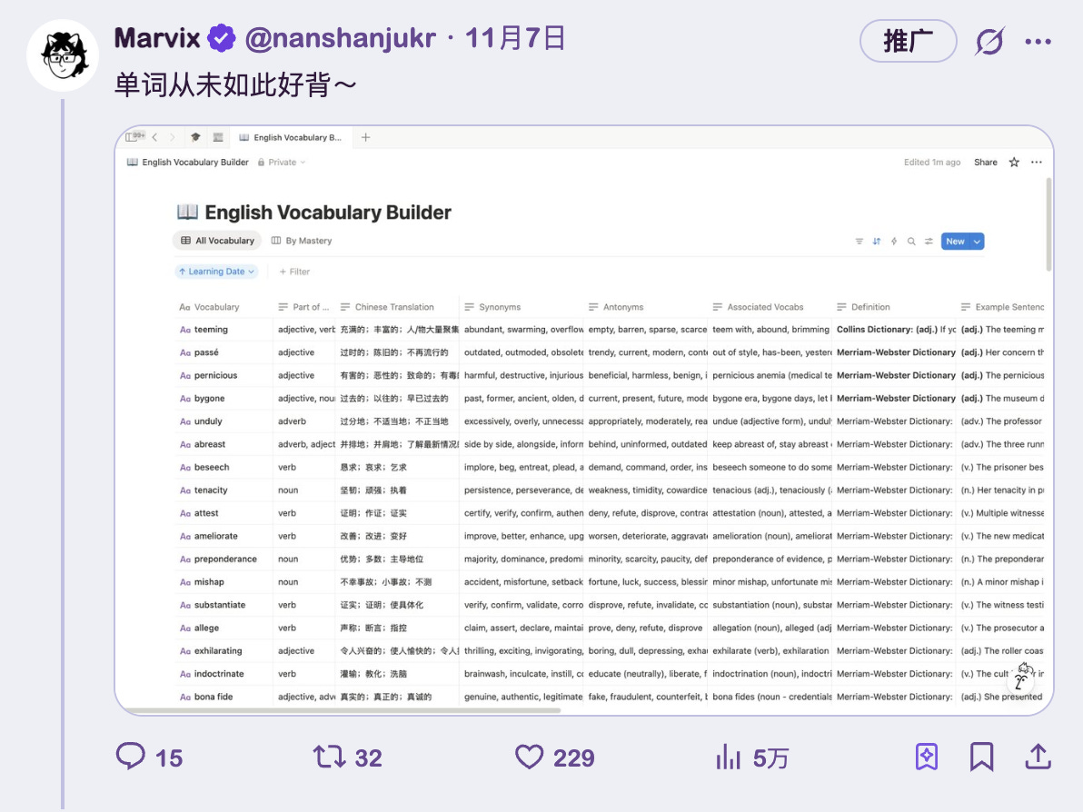 既然如此,我为什么还使用 Notion 「复刻」制作单词表呢?