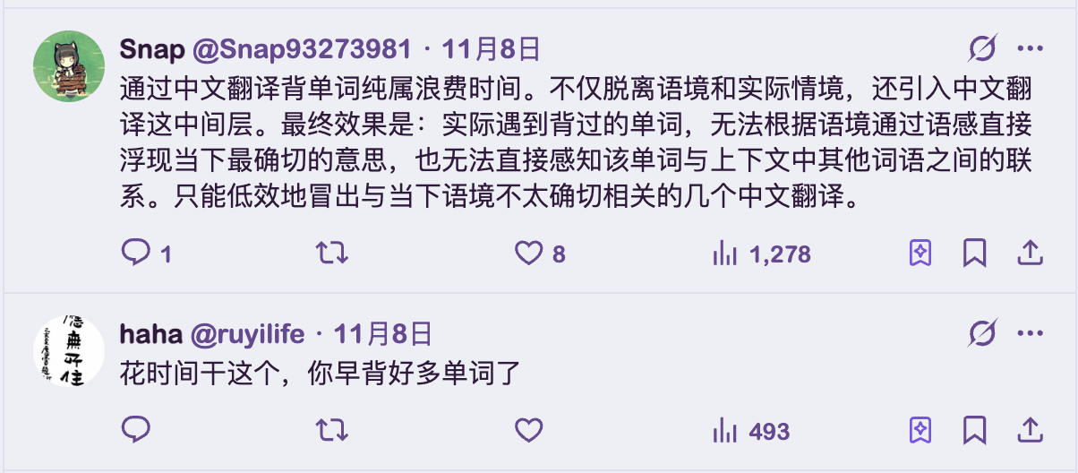 我分享了词典库的截图之后,遇到了一些「好心」的网友前来指点。
