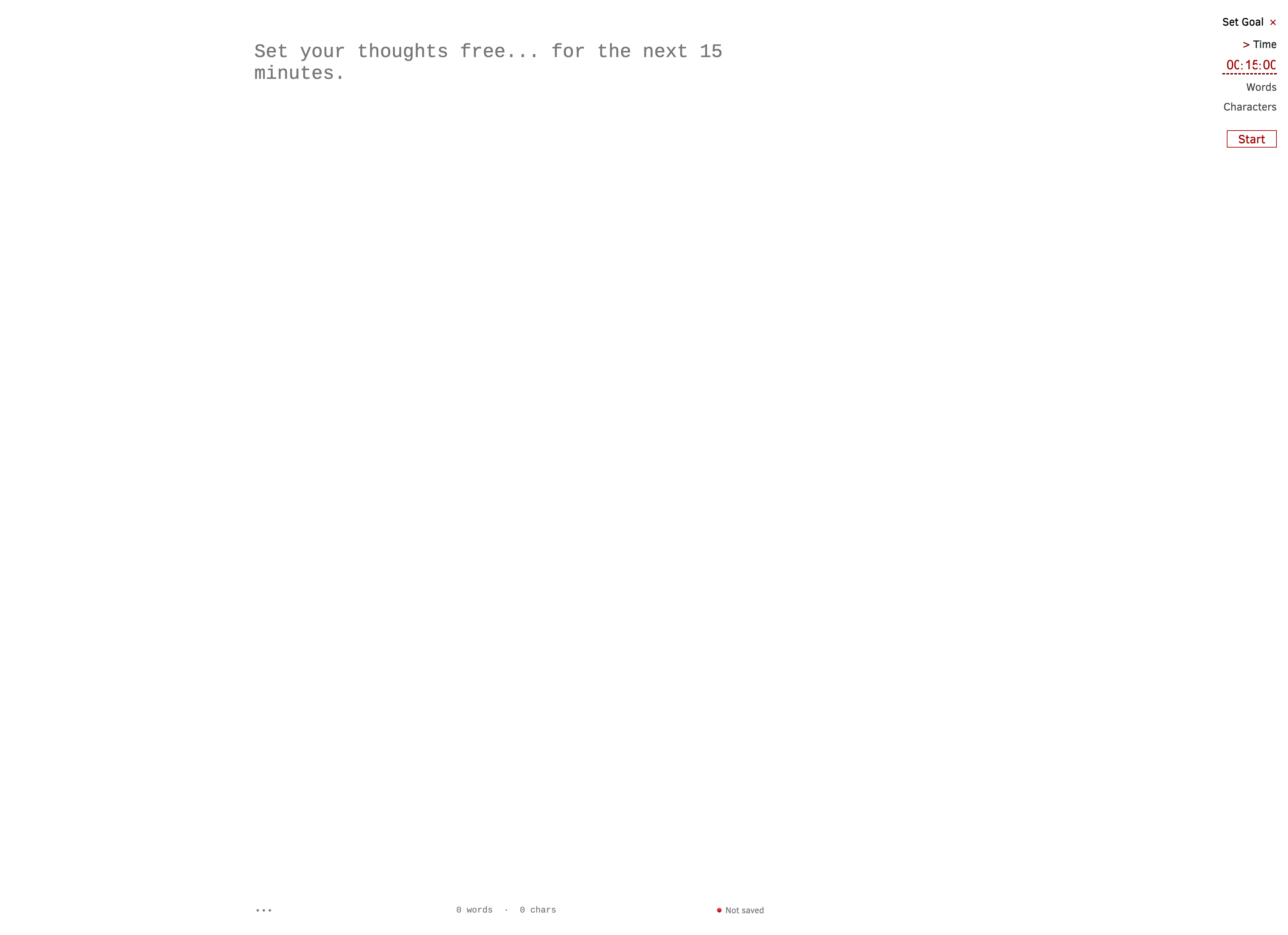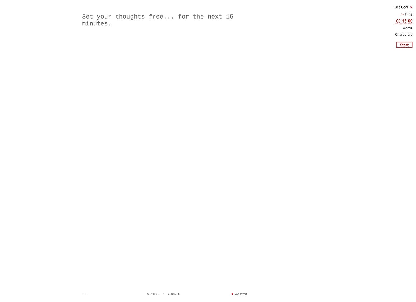 Freewrite 打造了一个在线的「自由写作」网页。你可以在右边设置「时间」和「字数目标」。开始输入后,自动开启正计时。
