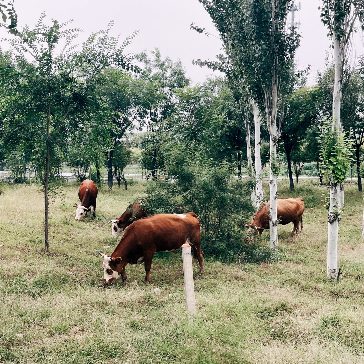 走着走着,刷着手机的我余光突然瞥到右侧有一块巨大的棕色,属实了吓一跳,定睛一看,原来是好几头正在吃草的牛。好久没有见过活牛了,是真高大啊。